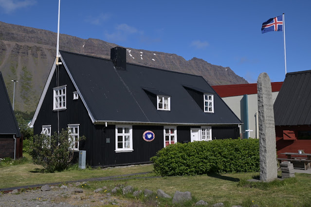 Ich komme an die Weggabelung, an der es links nach Húsavik zur Kirche hinunter geht. Geradeaus führt die F946 zum Lodmundarfjördur. Ich passiere die Wanderhütte Húsavik Hut. Diese sieht sehr leer aus aber es ist geflaggt. Also wird schon jemand zu Hause sein.