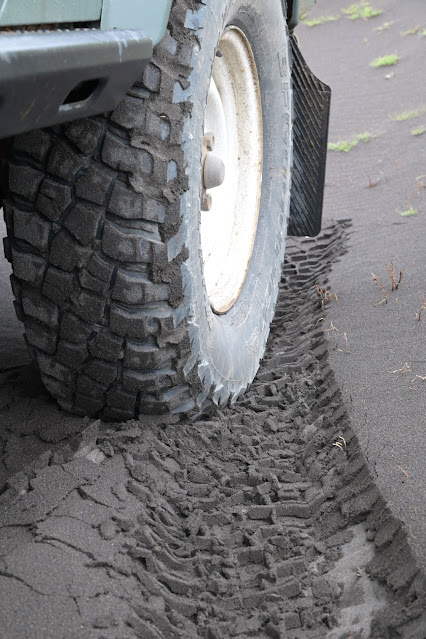 Die Isländer sind gut vorbereitet und haben jede Menge Erfahrung im Luft ablassen. In Windeseile schrauben sie das Ventil heraus und messen den Luftdruck mit einem ganz komischen Ding. So etwas ähnliches habe ich früher beim Fahrrad benutzt. Es sieht aus wie ein Kugelschreiber und der Druck wird über einen ausgefahrenen Stift angezeigt. Und ich bin doch so stolz auf mein analoges FLAIG Druckmessgerät "Made in Germany". Die Isländer sind mit ihrer Technik deutlich schneller als ich mit dem Luft ablassen.