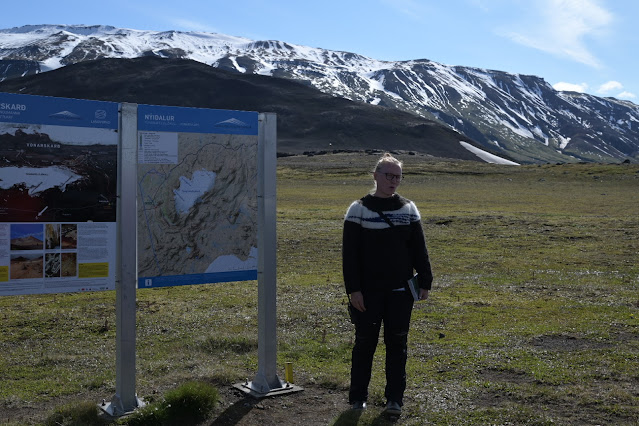 Die Piste steht voller Wasser und einige Pfützen haben sich gebildet. Ich passiere die Wanderhütte Hvanngil, zu der am vergangenen Abend noch Wanderer aufgebrochen waren. Außer Sichtweite von der Hütte steht ein großer Müllcontainer, in dem ich meinen Abfall entsorge.